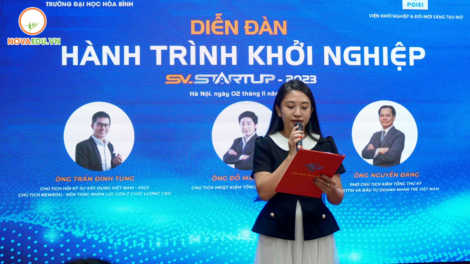 Ngày 2-11-2023, NovaEdu đã đến trường Đại học Hòa Bình tổ chức diễn đàn “Hành trình khởi nghiệp” nơi chúng ta cùng nhau thảo luận về định hướng và thúc đẩy khởi nghiệp trong môi trường Đại học. Đây là cơ hội rất tuyệt vời để tìm hiểu về lợi ích, vai trò và sự cần thiết của khởi nghiệp trong hành trình học tập và phát triển bản thân.